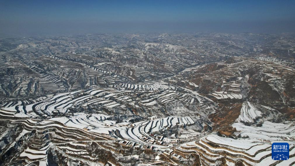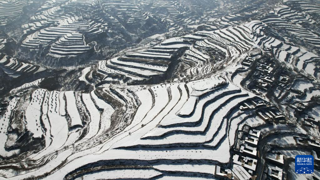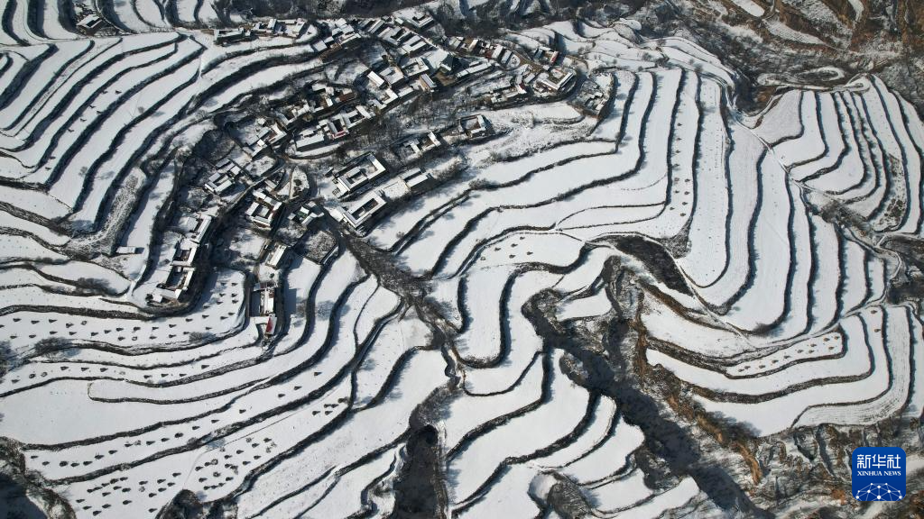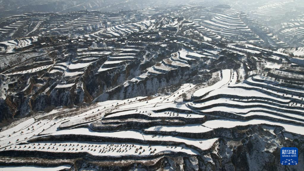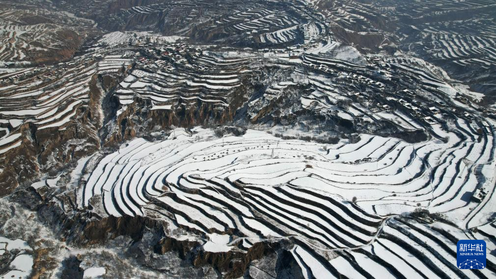 2月25日在东乡族自治县沿岭乡境内拍摄的梯田雪景(无人机照片)。新华社记者 陈斌 摄