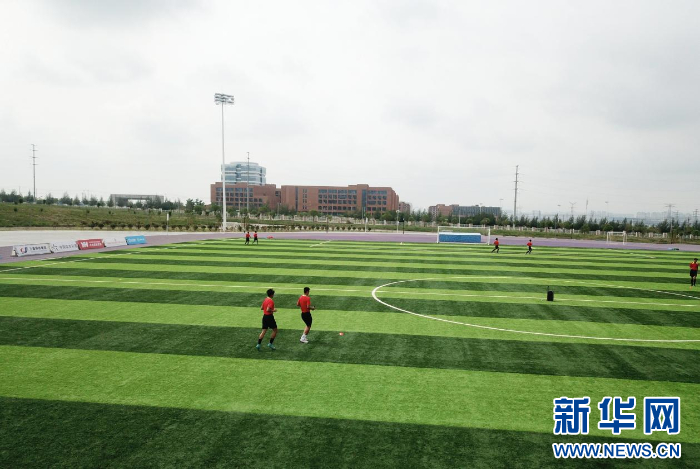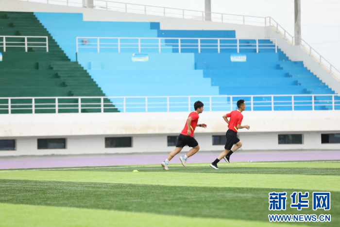 裁判员正在进行40米冲刺跑测试。新华网发(童张伟 摄)