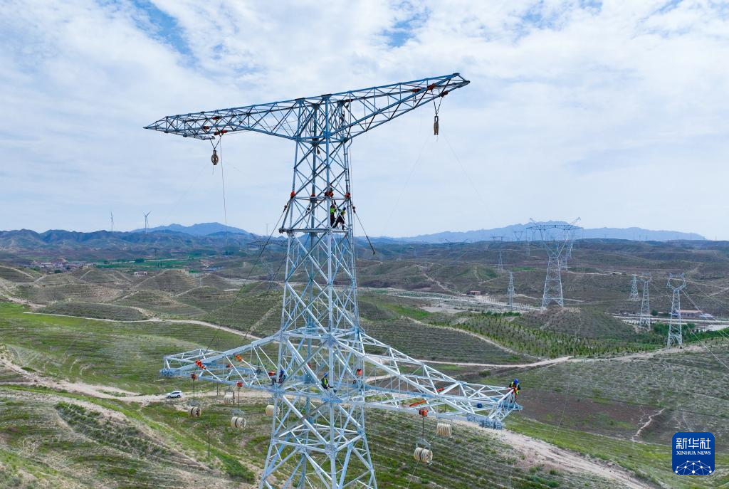 白银至天都山第三回750千伏线路工程(甘肃段)开展导线展放工作。(国网白银供电公司供图)